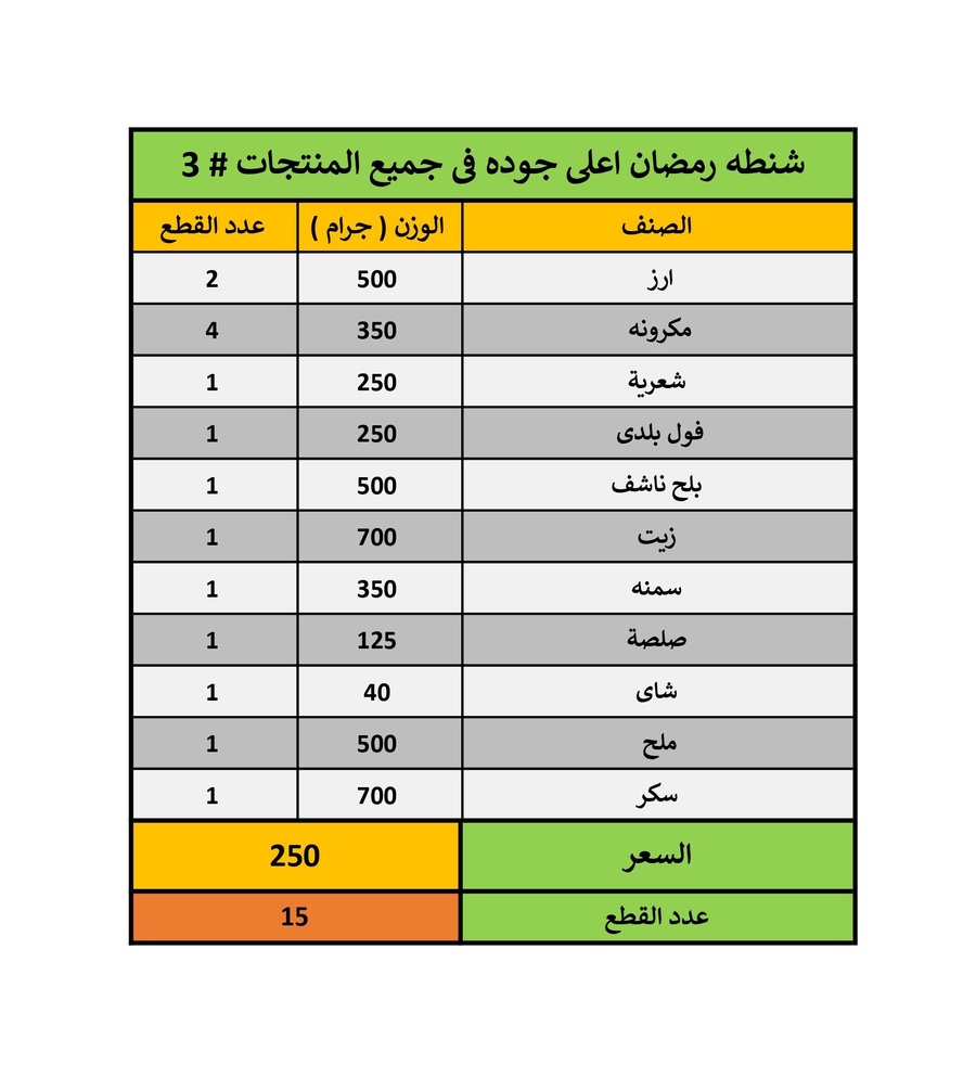 الإجمالي: 15 قطعة بسعر نهائي 250 جنيه.