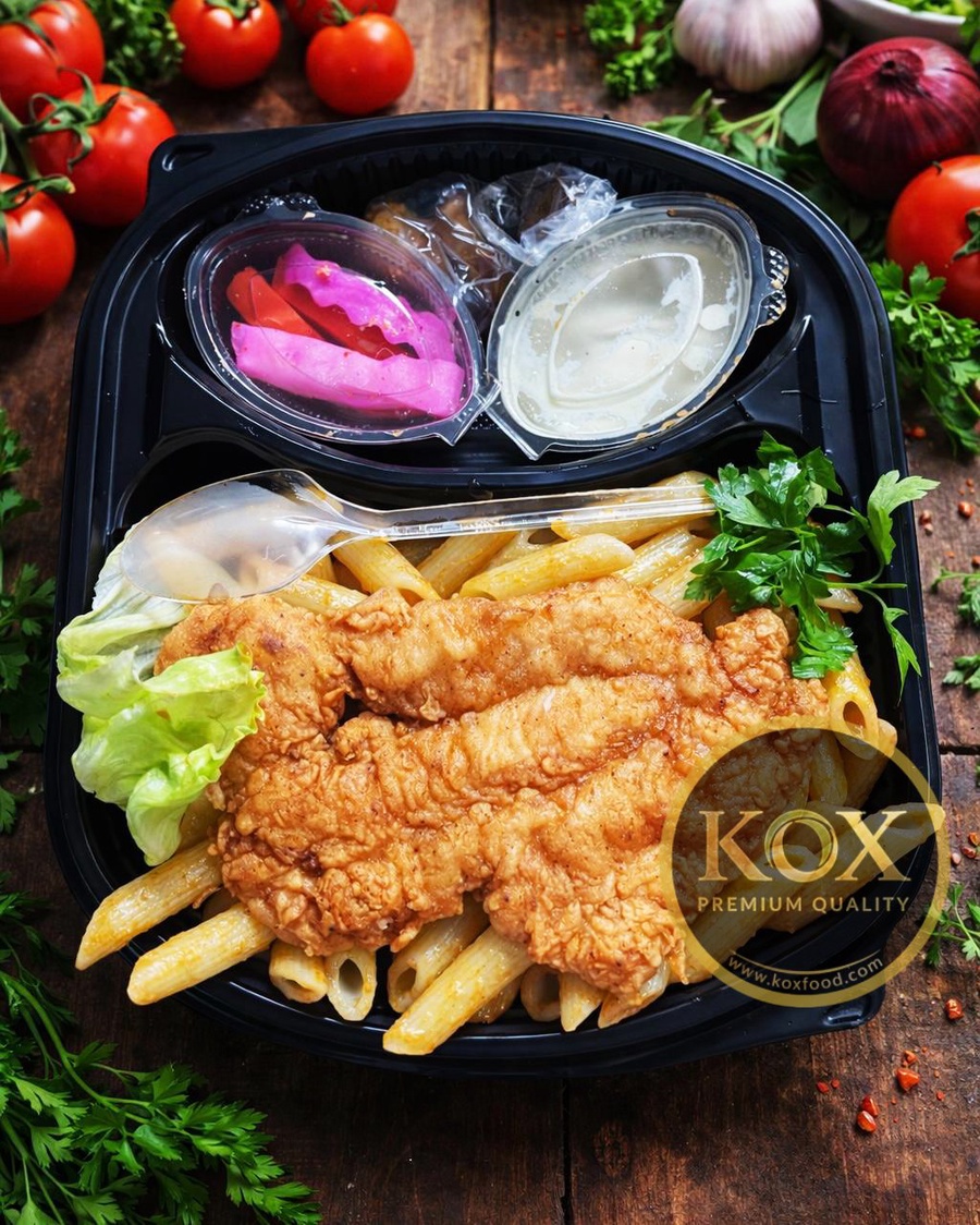 المكونات: مكرونة بصلصة + قطعة بانية + طحينة + مخلل + 3 تمر